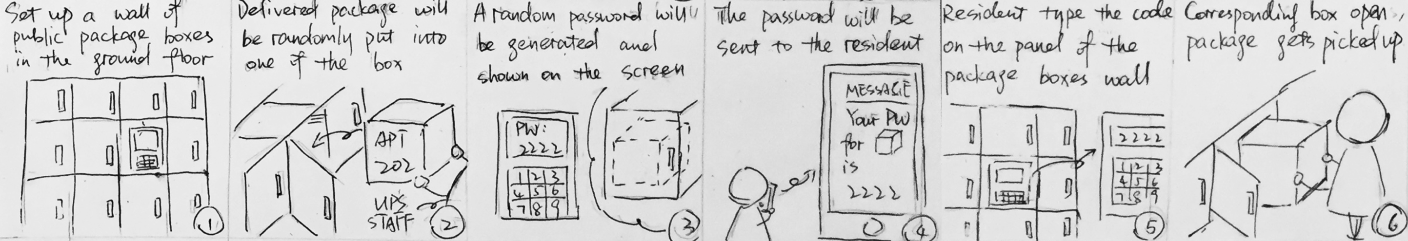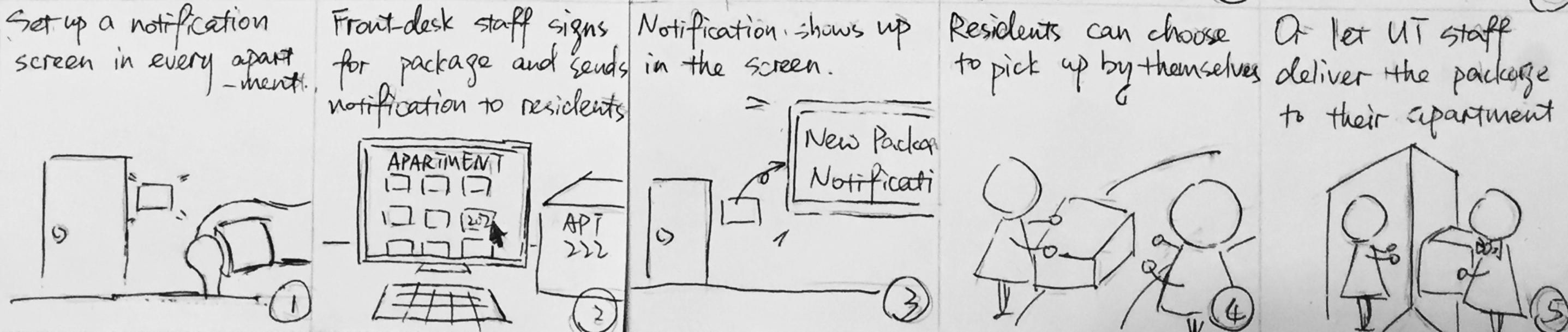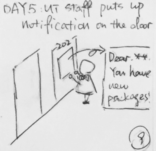 Currently, the coming packages will firstly be signed by UT staffs and temporarily stored in a warehouse. Then a piece of paper notification will be put into the corresponding mailbox. As residents see the notification, they can go to the front desk picking up packages.